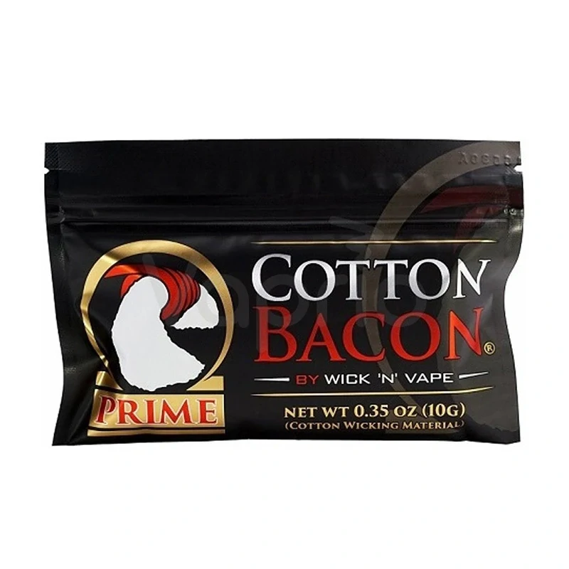 Prvotřídní výrobce je zpět s novou vatou. Cotton Bacon Prime má oproti předchozí verzi lepší vlastnosti a až o 33% více absorbuje e-liquid. Jednotlivá vlákna okamžitě nasáknou náplň nehledě na její složení. Perfektní je také podání chuti, tu umí Prime vykouzli přímo prvotřídní. Balení obsahuje deset 12centimetrových proužků vaty, se kterými se snadno pracuje a dobře se vkládají do různých atomizérů.