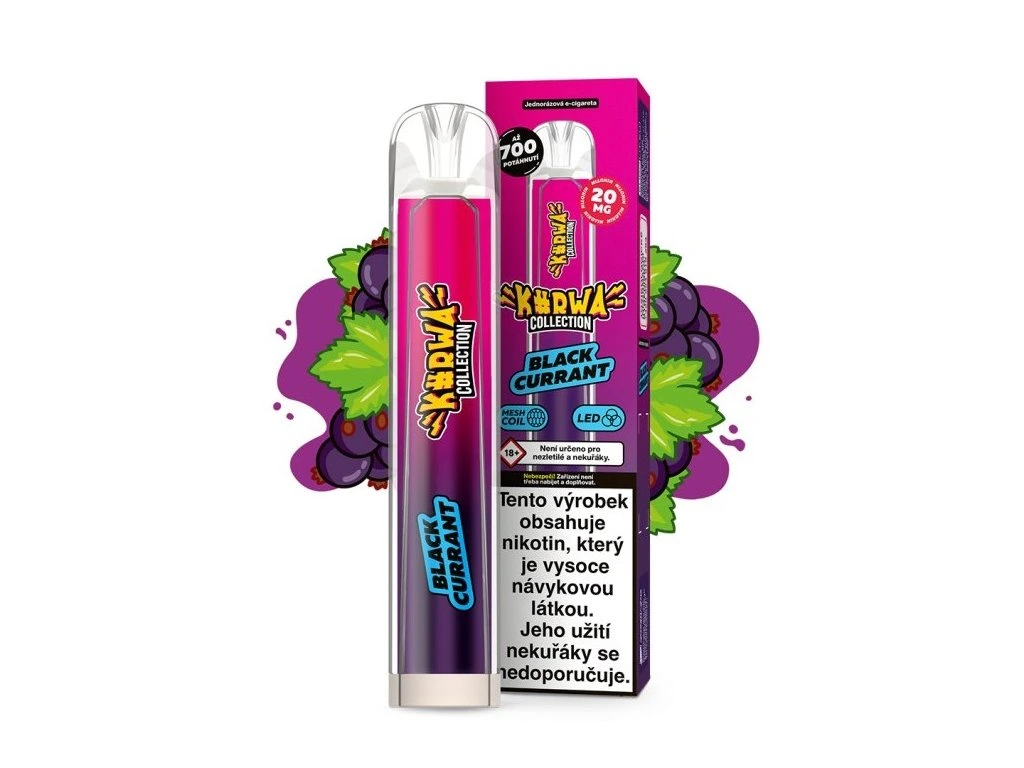 Jednorázová s výraznou chutí černého rybízu, která kombinuje sladkost a mírnou kyselost.